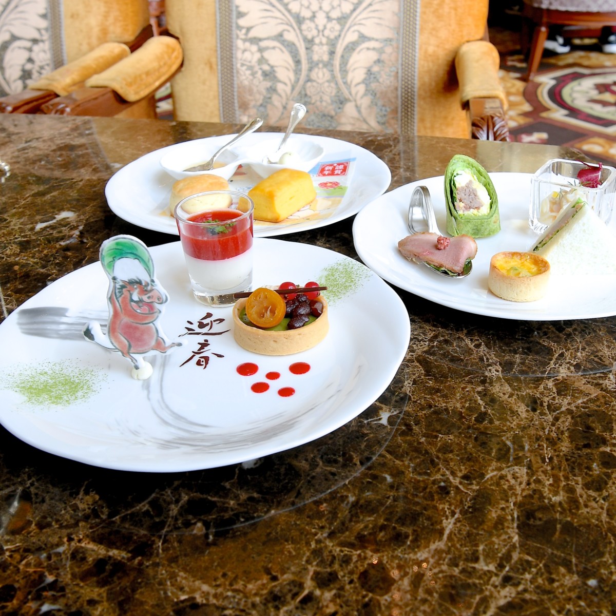 開放感のあるラウンジでゆったりと美味しくてかわいいお食事がたのしめる“イヤーエンド&ニューイヤー2019”アフタヌーンティーセット。