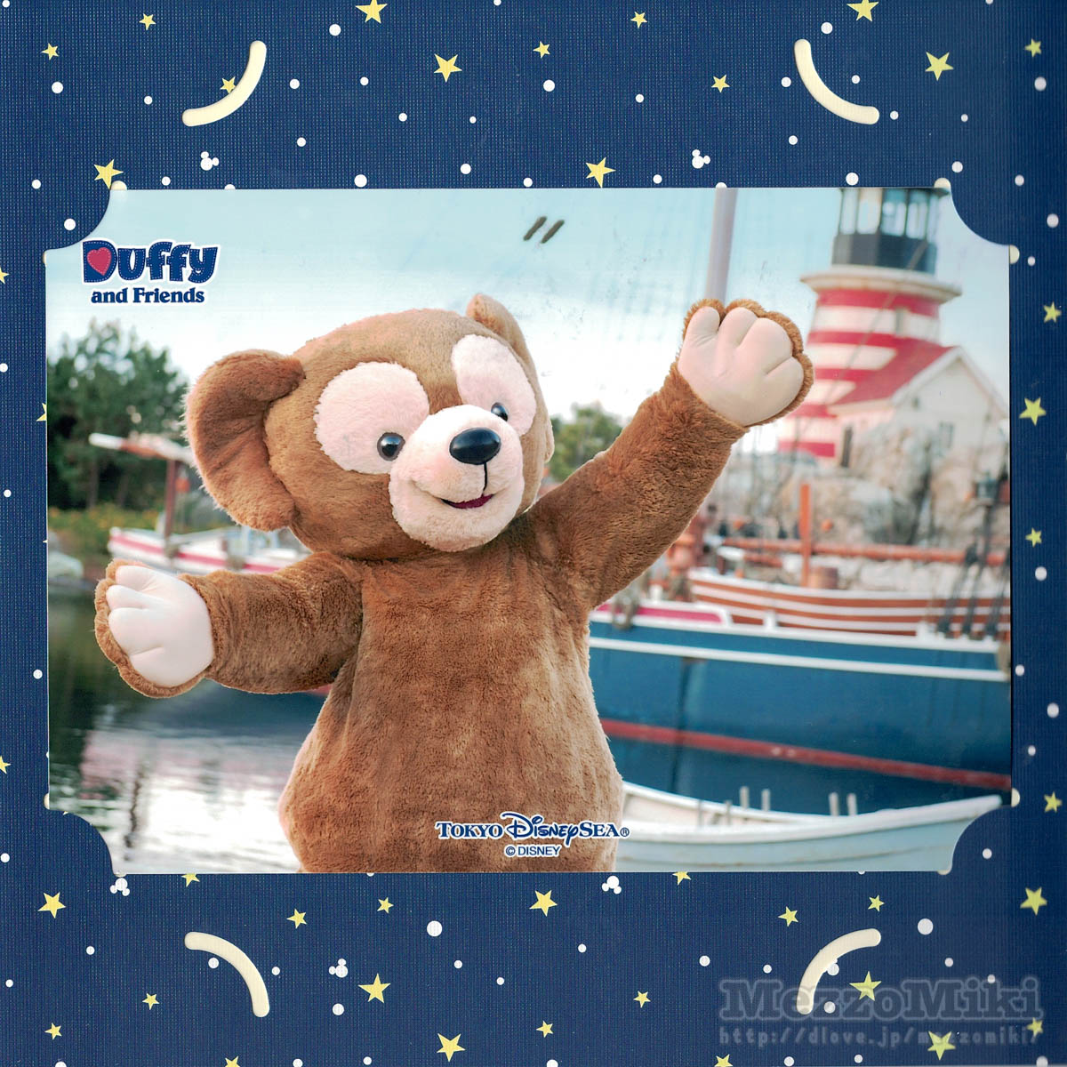「ダッフィーのトゥインクルウィンター」デザインのフォト台紙に入ったスナップフォトが注文できるダッフィーとシェリーメイちゃんのグリーティング。