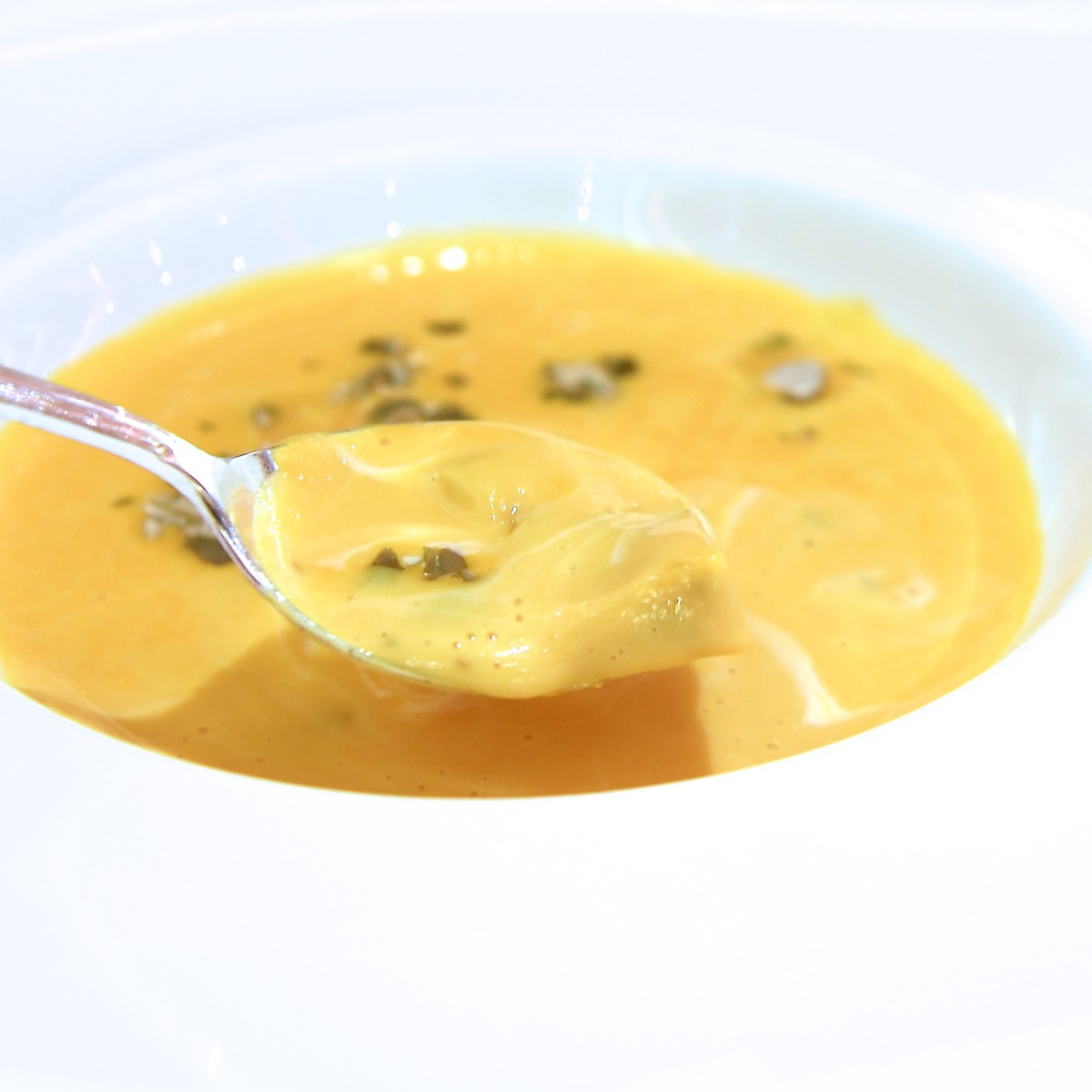カボチャのスープ セージ風味のニョッキを浮かべて