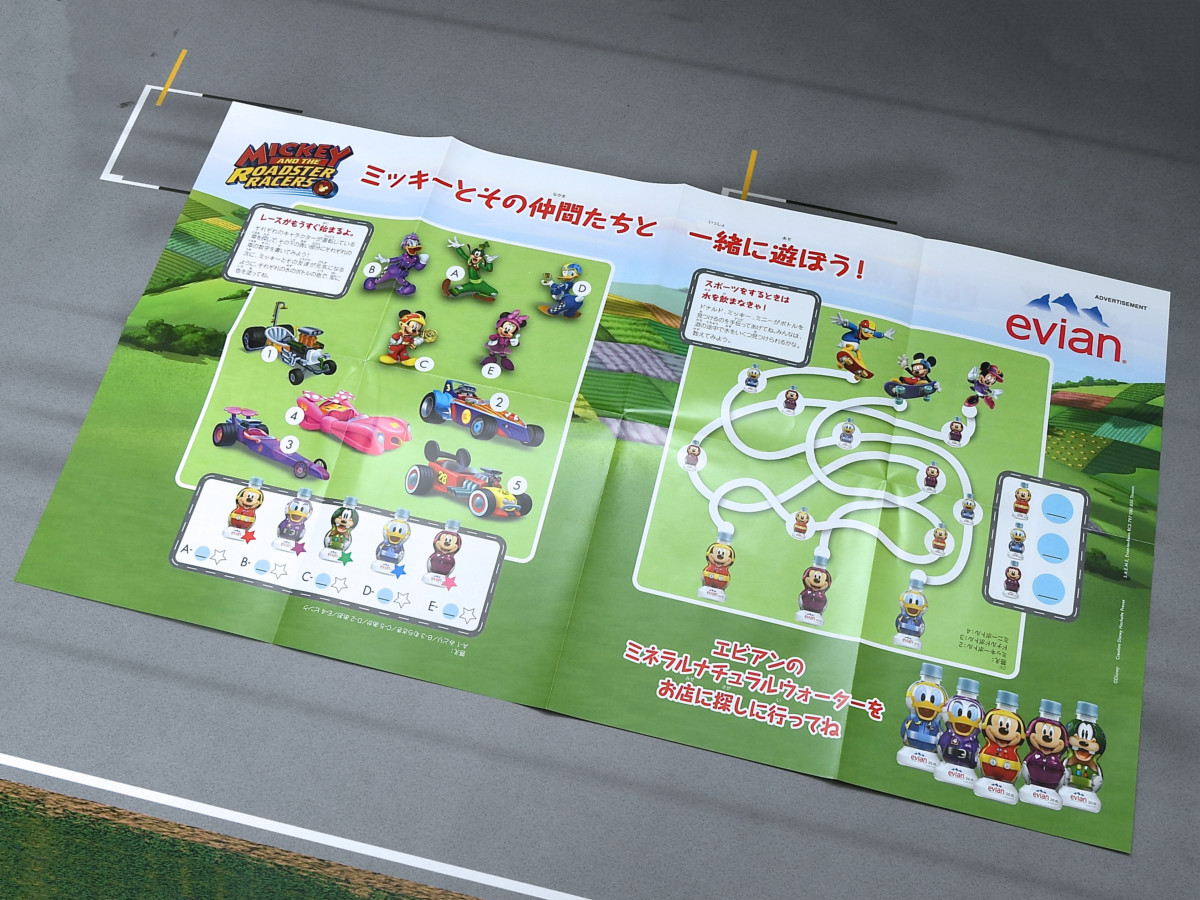 「エビアン トーテム ディズニーボトル」から「ディズニーサンデー」などで放映中の『ミッキーマウスとロードレーサーズ』デザインが登場!