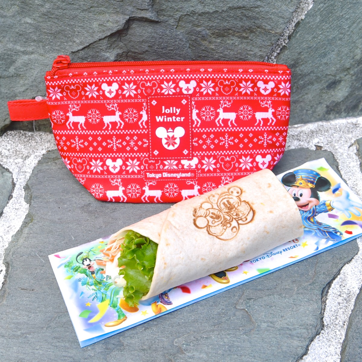 おしゃれなスーベニアポーチ付き!フードブース“ディズニー・クリスマス2018”ラップサンド(焼肉&エッグ) の紹介でした。