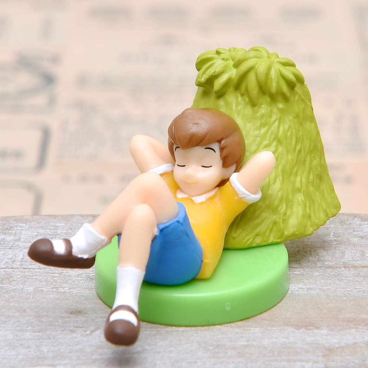 お昼寝をしているクリストファー・ロビンのフィギュア。