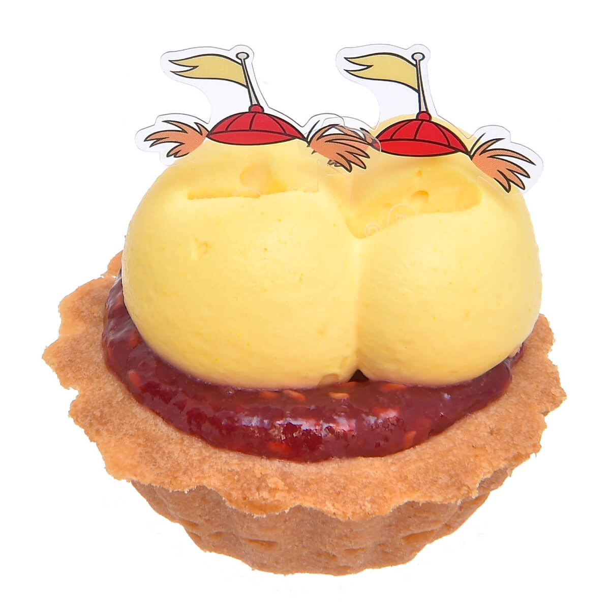 双子のディーとダムはバナナクリームとラズベリージャムのタルト。