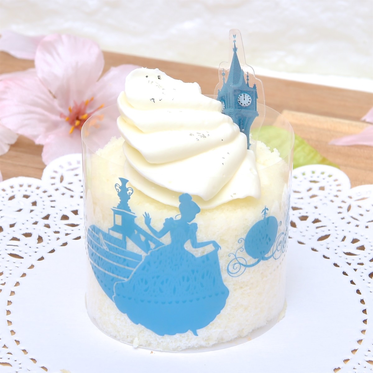 アリエルは青りんごクリーム&いちごクリームのタルト、ラプンツェルはチーズクリームのタルト、シンデレラはガラスの靴がのったチーズクリームのケーキでそれぞれをイメージ。