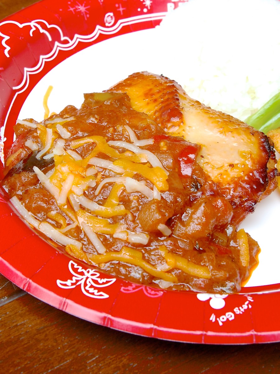 ローストチキン、ベジタブルトマトソースとチーズはやわらかくてジューシー!