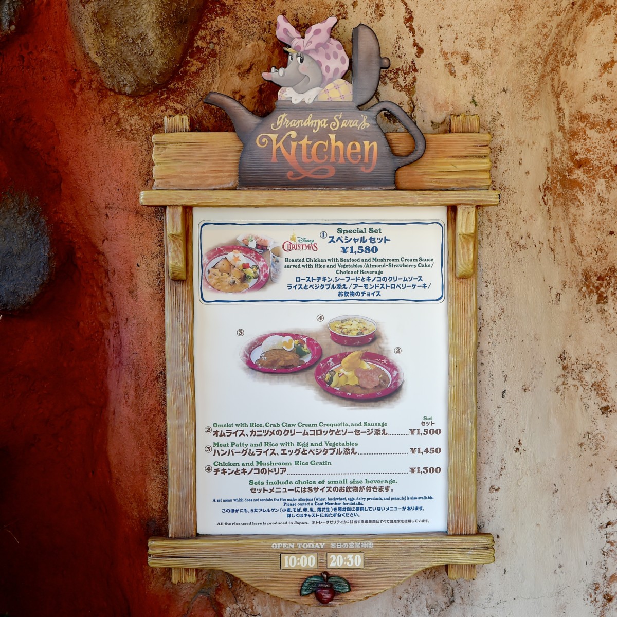 そんな「クリッターカントリー」にある洋食レストラン「グランマ・サラのキッチン」では、ジャコウネズミのサラおばあちゃん(グランマ・サラ)が作る家庭的な洋食メニューを提供!