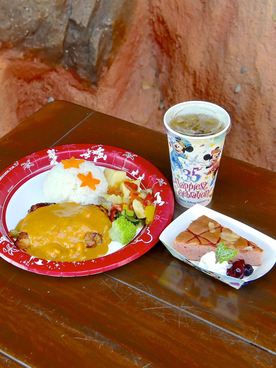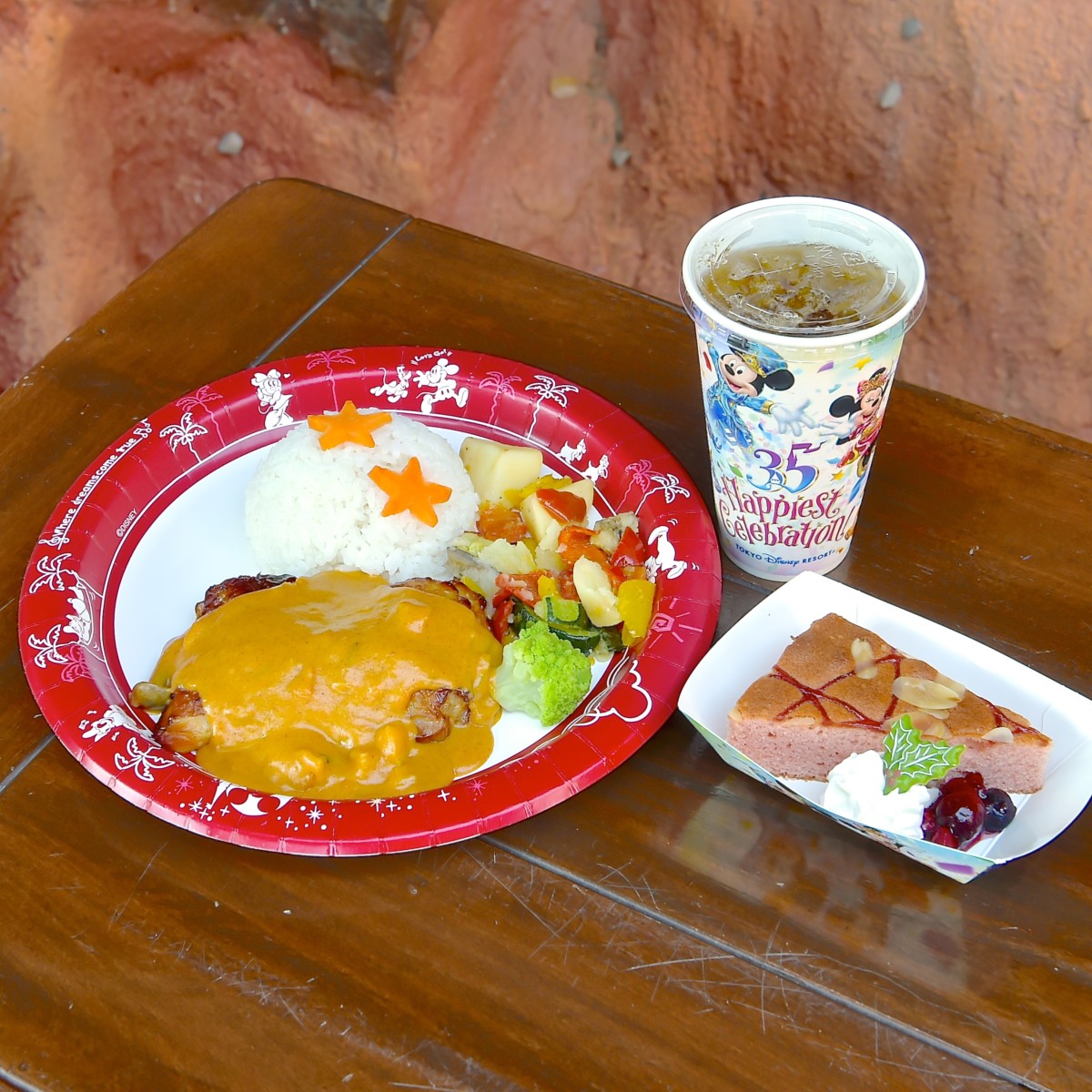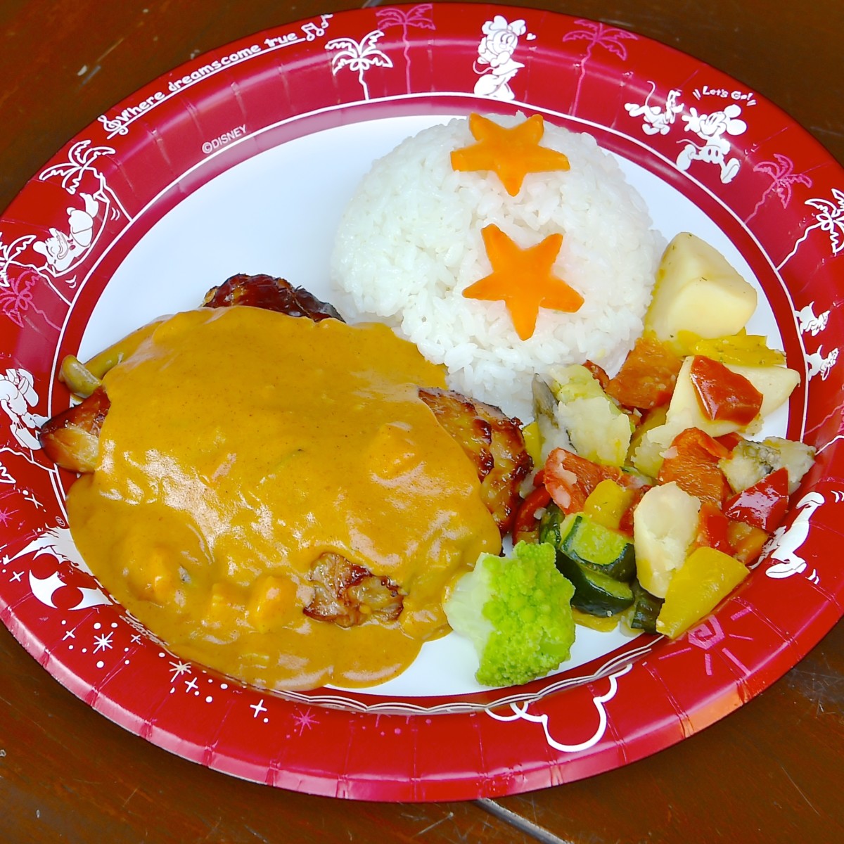 メインとなるのは「ローストチキン、シーフードとキノコのクリームソース、ライスとベジタブル添え」