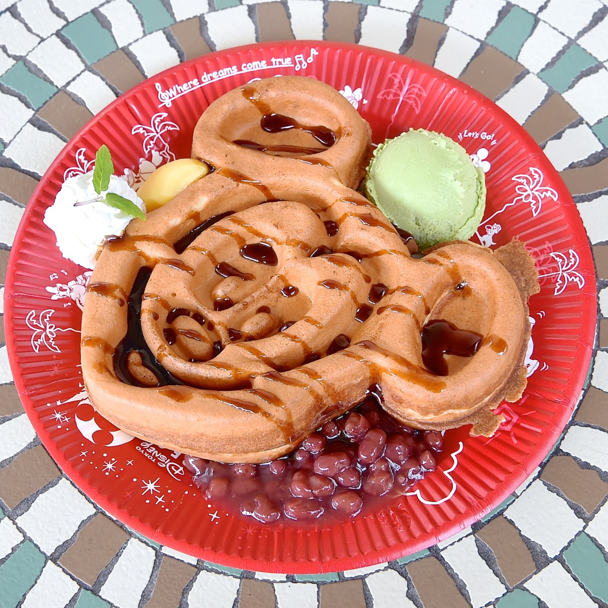 冬の季節のワッフルとして6年連続の登場となったミッキーワッフル「あずき&抹茶アイスクリーム」