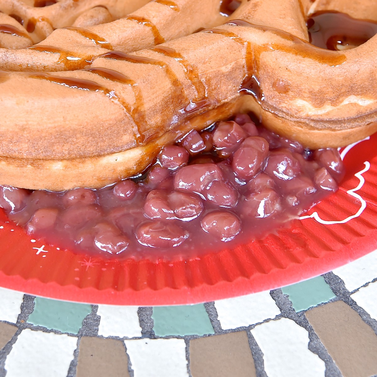 洋風デザートであるサクサクで軽い食感のワッフルとの相性も抜群なあずきをたっぷりとトッピング。