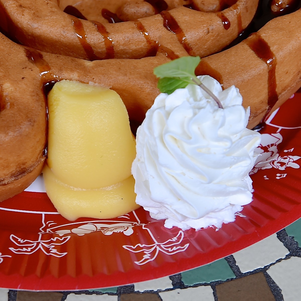 グランドメニューも3種類提供されているパークの定番スウィーツ「ミッキーワッフル」