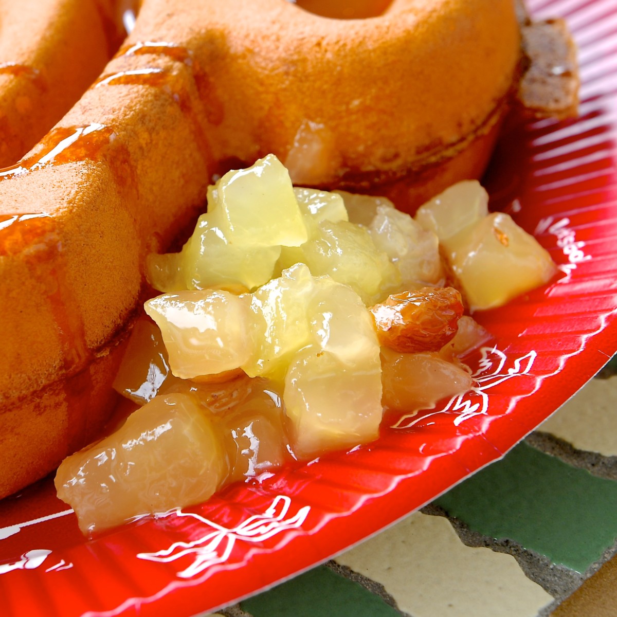 サクサクとした食感のミッキーワッフルとあわせると、まるでアップルパイのような味わいになる角切りリンゴがはいったアップルジャム。