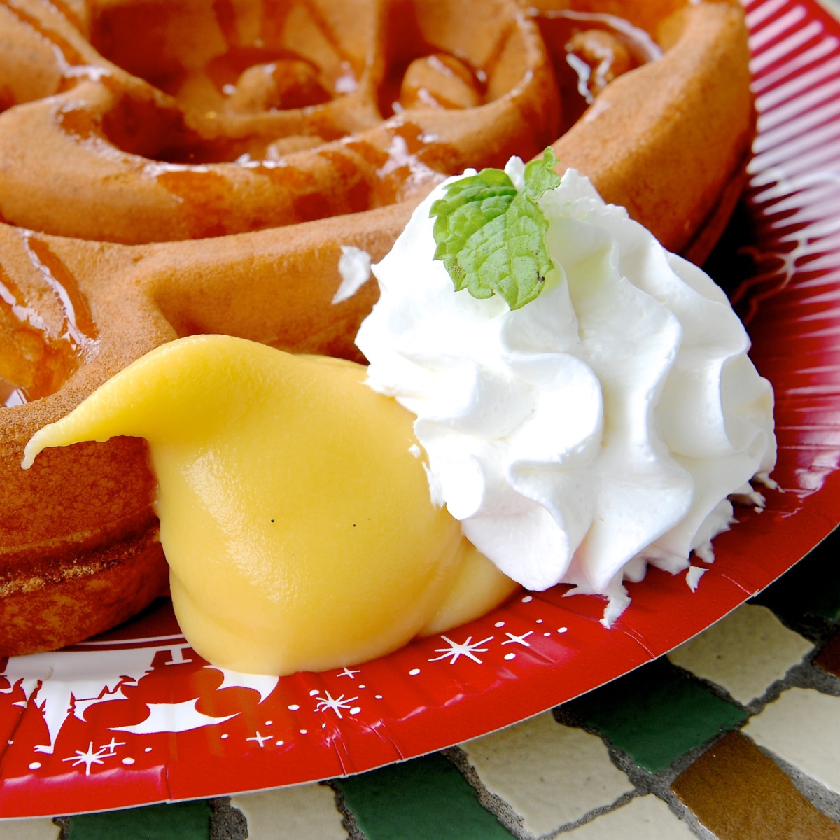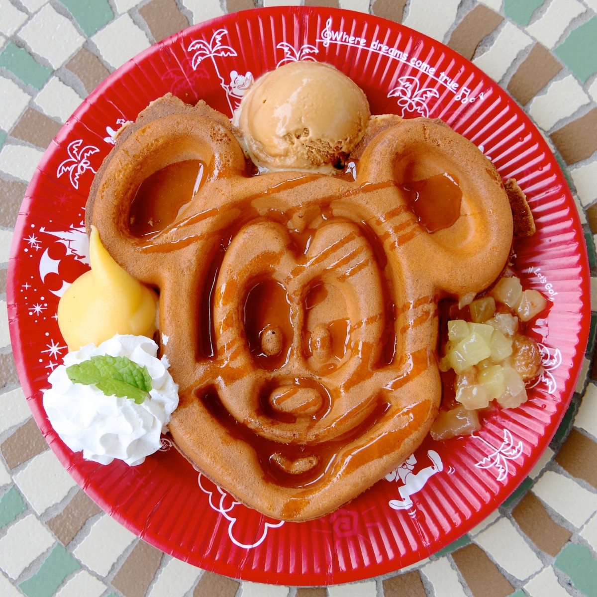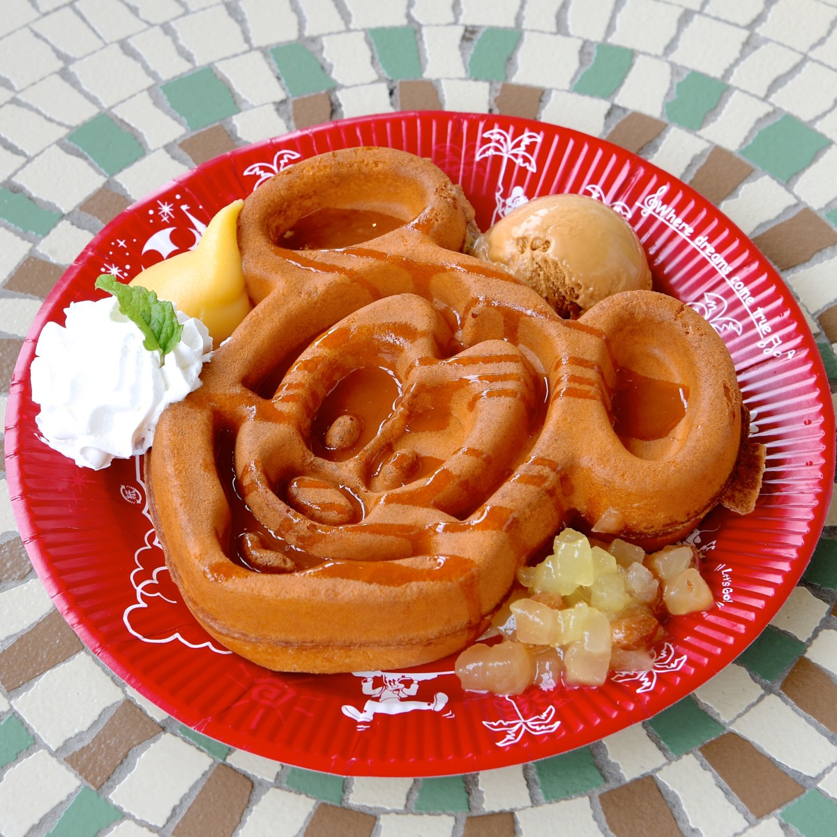 目の前で焼き上げられていく、サクサクなミッキーシェイプのワッフルは東京ディズニーランドに来たらぜひ食べたいデザートメニューです。