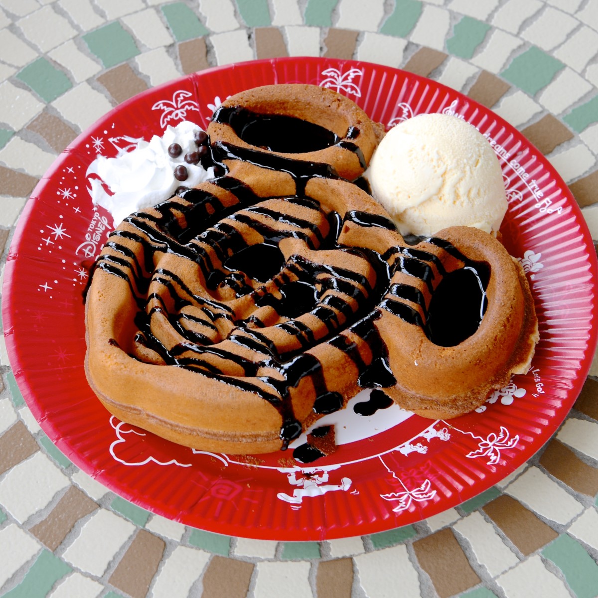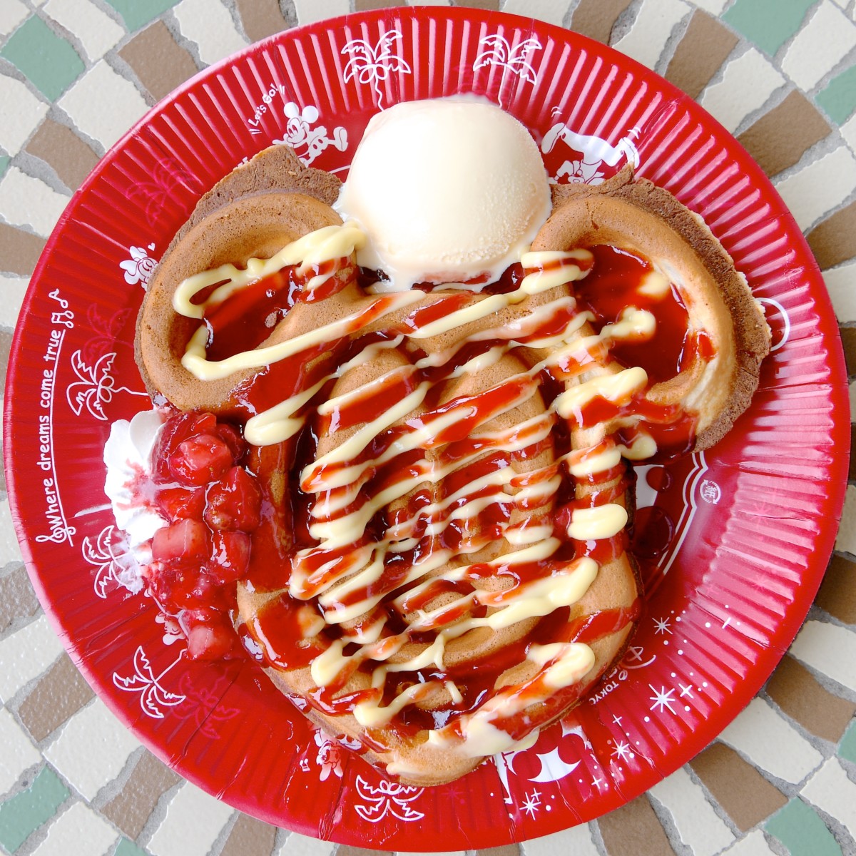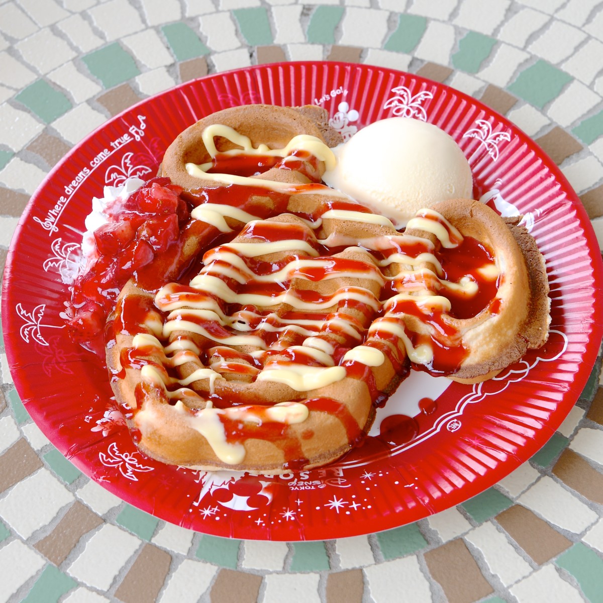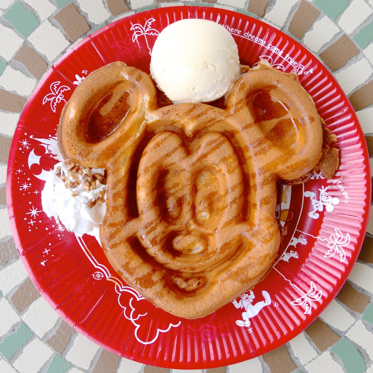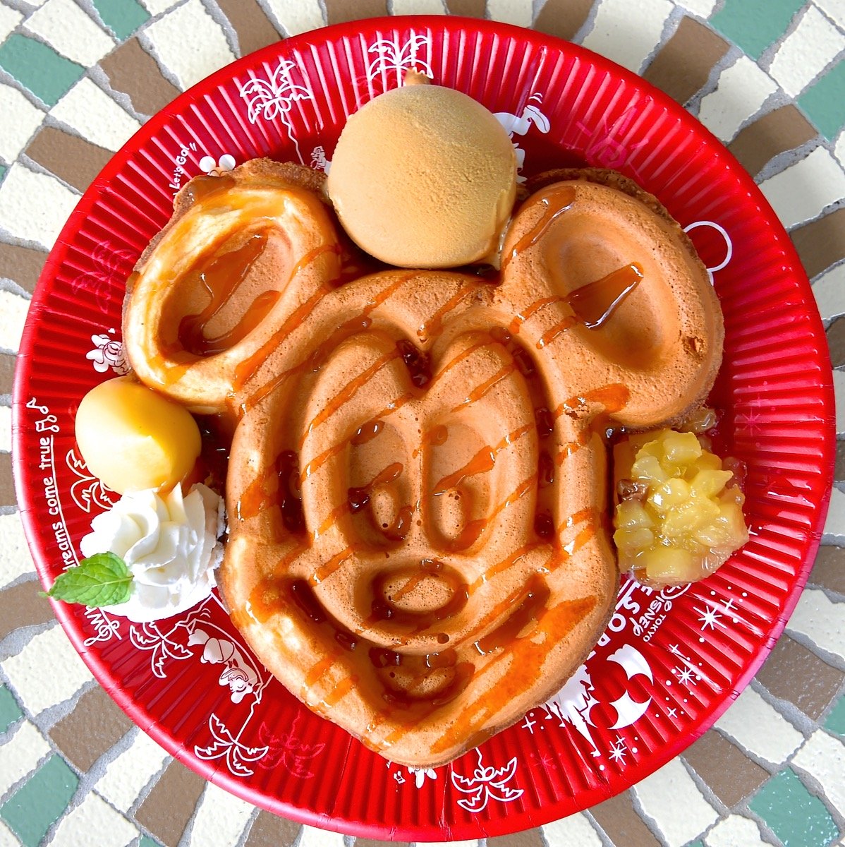 ミッキーシェイプのワッフル!東京ディズニーランド「グレートアメリカン・ワッフルカンパニー」グランドメニューの紹介でした。