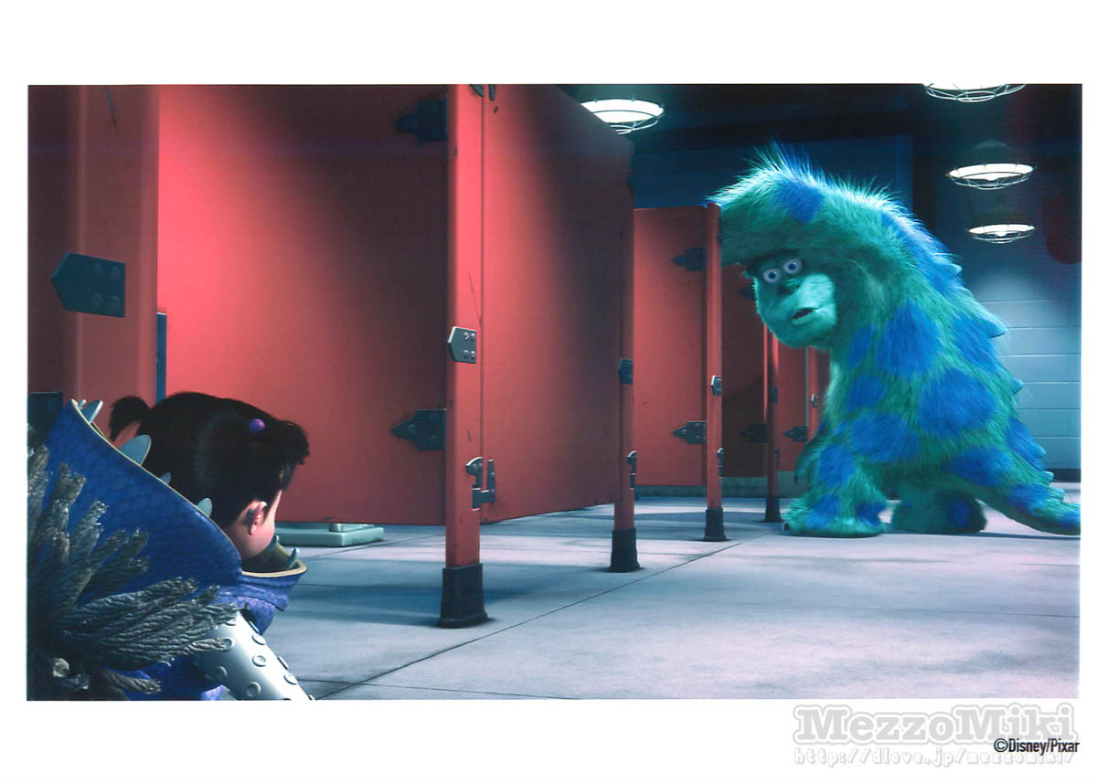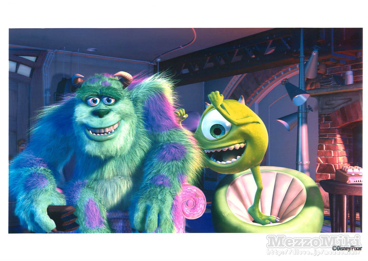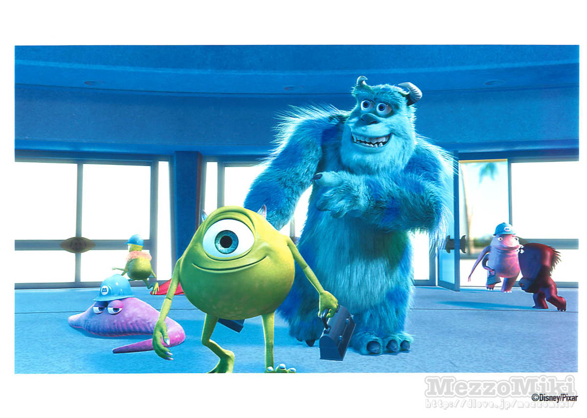 主人公の「サリー」と「マイク・ワゾウスキ」がモンスターズ・インクに出社している2ショット。