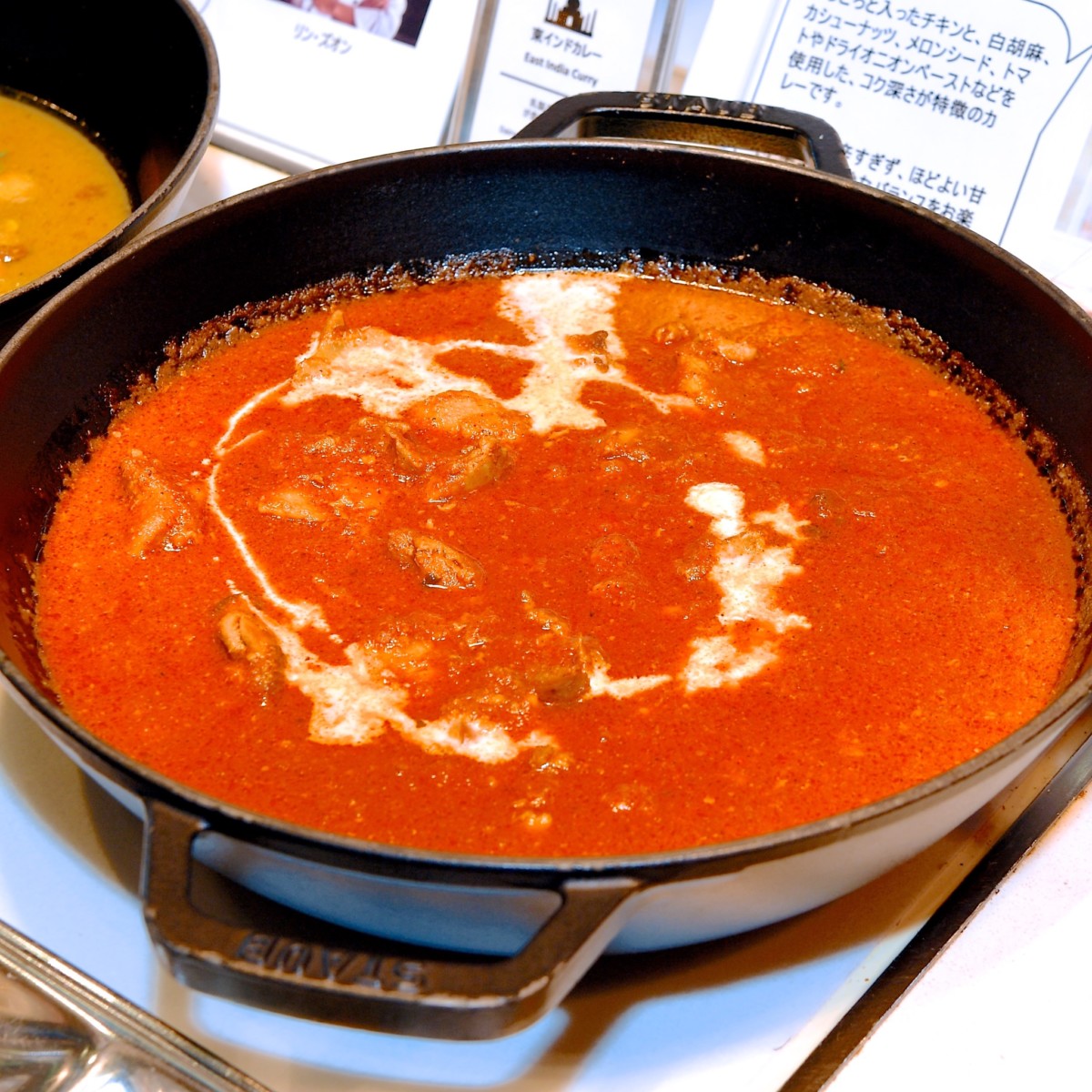 チキン、白胡麻、カシューナッツ、メロンシード、トマト、ドライオニオンペーストなど様々な食材を使用した東インドカレー。