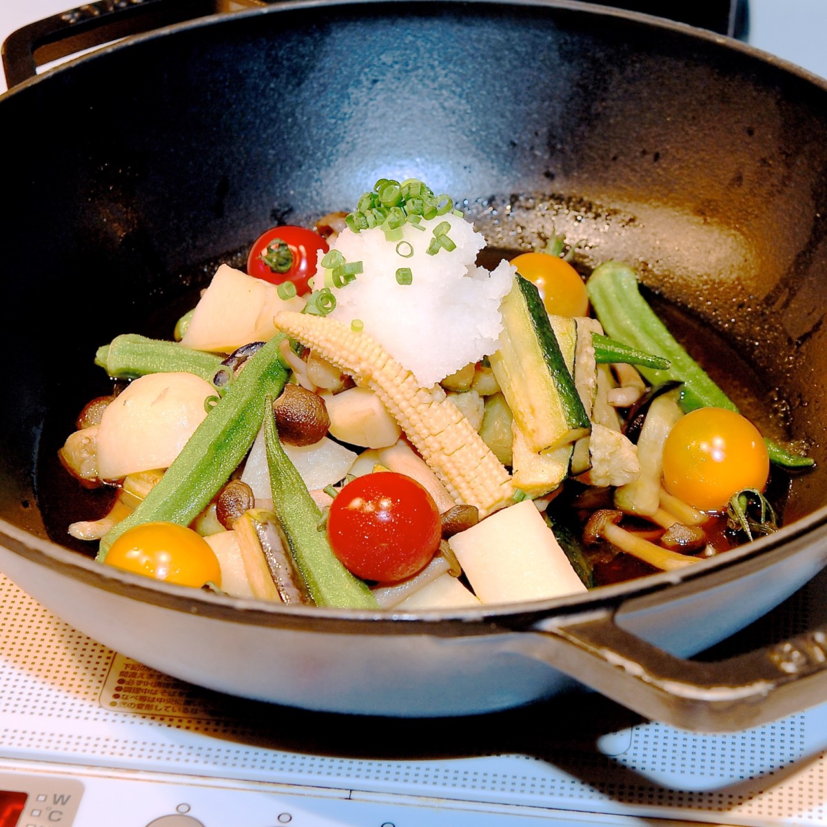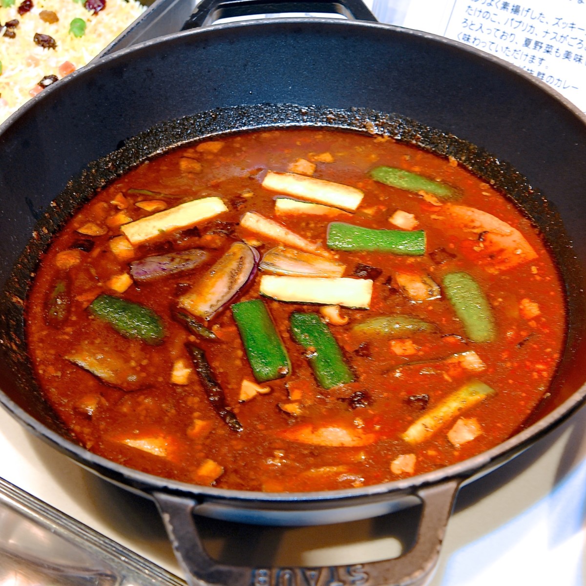 素揚げした夏野菜(ズッキーニ、たけのこ、パプリカ、ナス)がごろごろと入った夏にピッタリのカレーです。