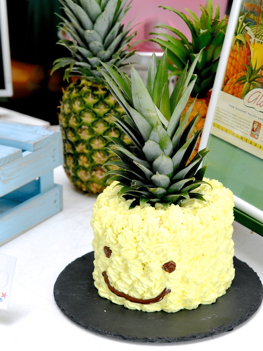 周りにバタークリームを絞り、パイナップルの形になっています。