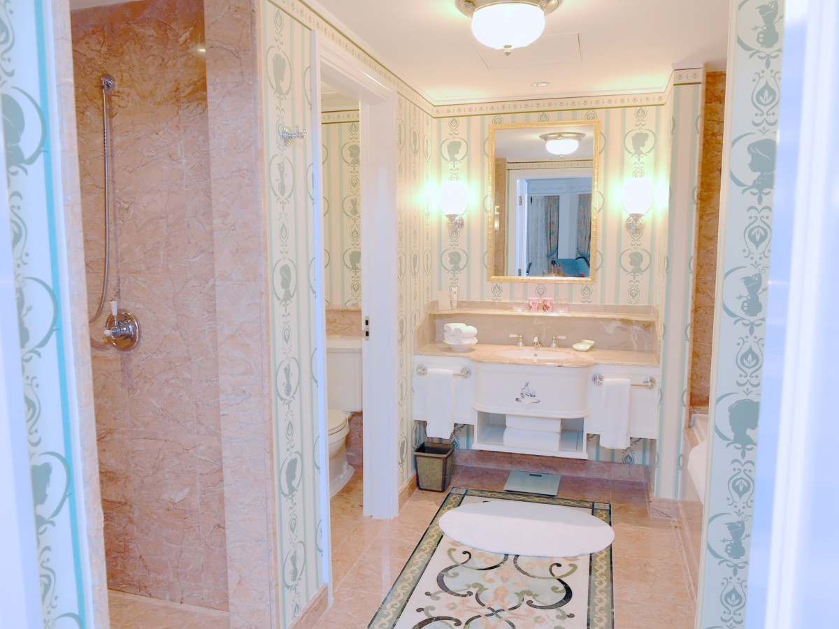 バス・トイレ・洗面所にもアナ、エルサ、オラフのシルエットがデザインされた壁紙が!