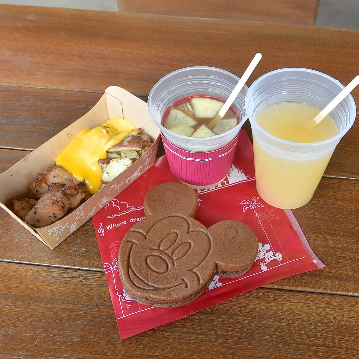 ベイクドポテトと2種類のドリンク、ミッキーシェイプのデザート「ミッキーのカステラケーキ」、スペシャルイベントメニューが販売されています。