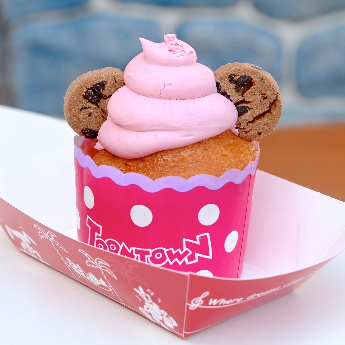 しっとり美味しいチョコチップストロベリーマフィンにストロベリー味のクリームとチョコチップクッキーのお耳がトッピングされています☆