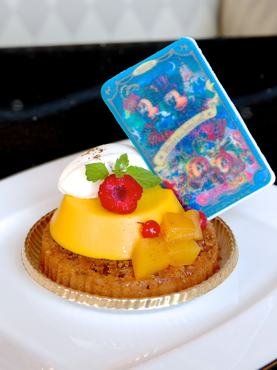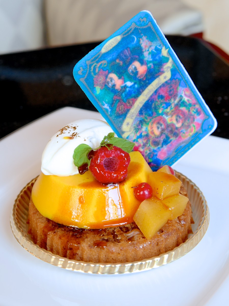 しっとり濃厚なパンプキンプディングに、新パレード「スプーキー“Boo"パレード」に登場するミッキーたちがデザインされたカード型のトッピング!