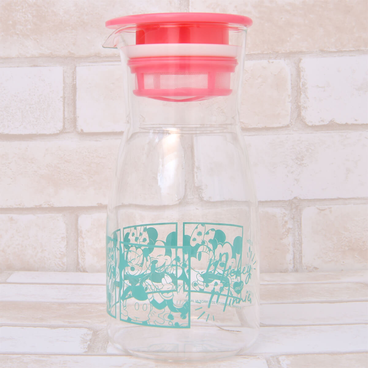 写真のフレームに納まったようなミッキー&ミニーちゃんがデザインされたガラスポット。