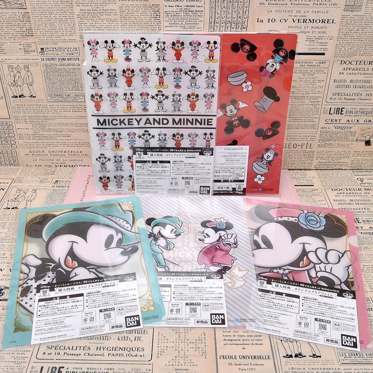 「一番くじ 〈ミッキーマウス〉90 YEARS of ROMANCE」を1度に3回購入するとその場で1枚プレゼントされるオリジナルクリアファイル。