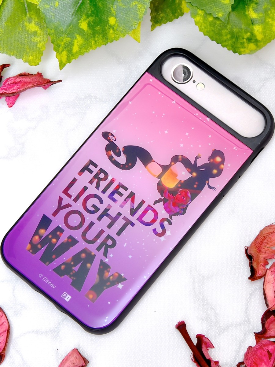 キラキラと光沢感のある背面パネルにはディズニープリンセスたちのシルエットとプリンセスたちのイメージに合った「Aphorism(格言)」