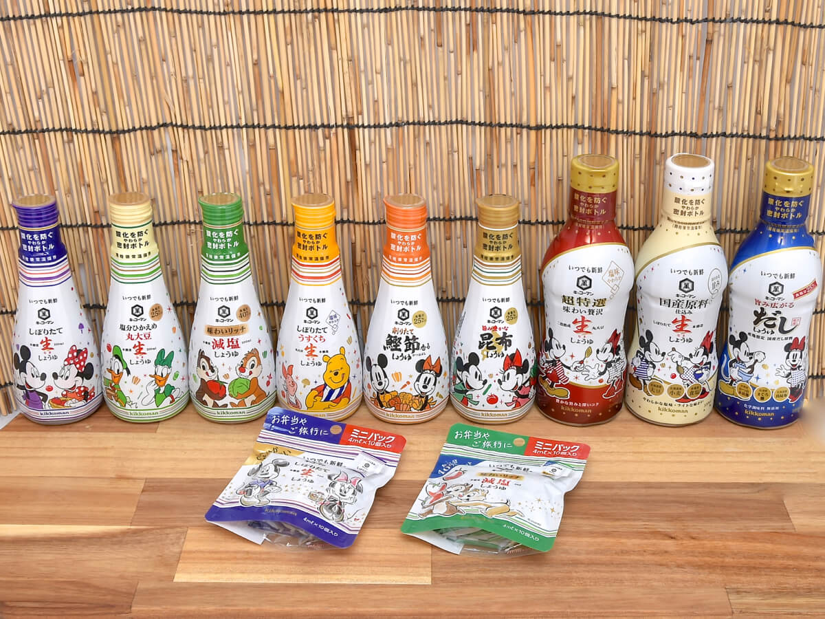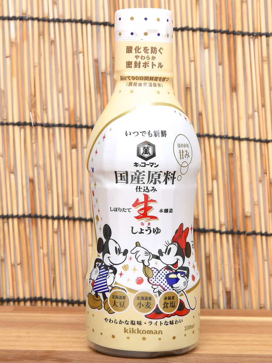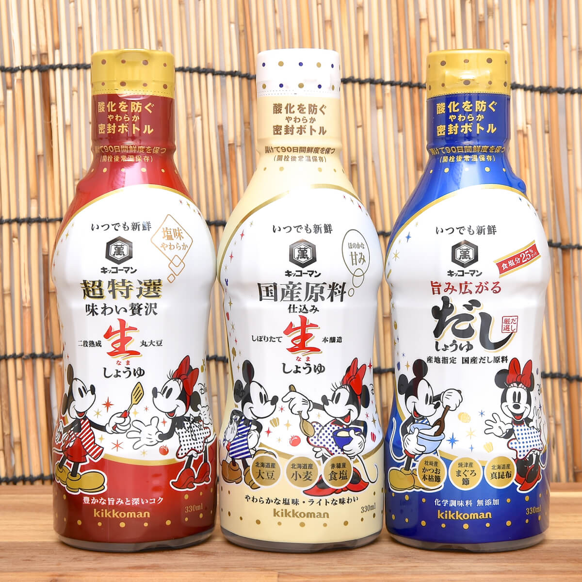 「しぼりたて生しょうゆ」はミッキー&ミニーデザイン。
