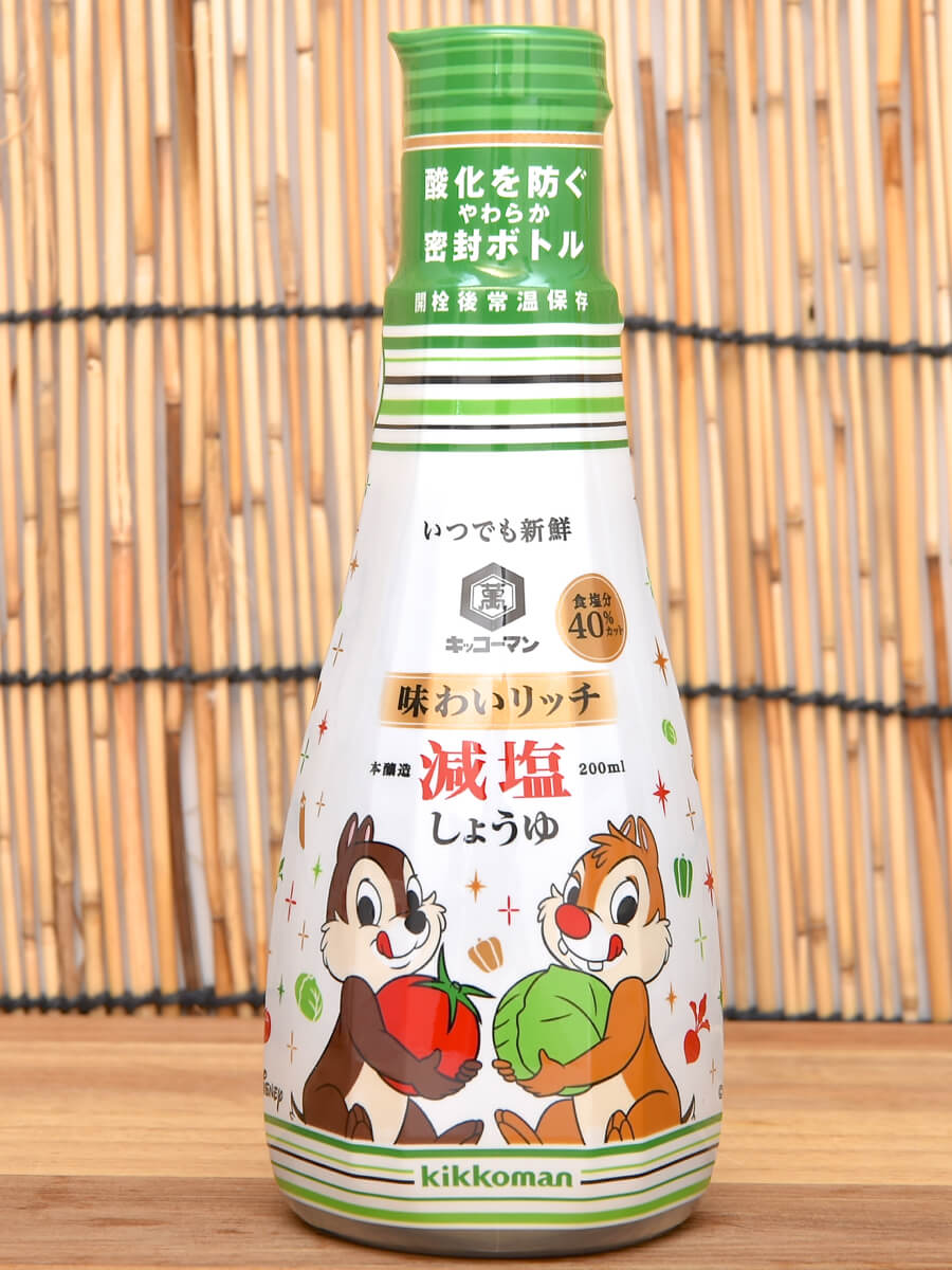 「味わいリッチ減塩しょうゆ」はチップ&デールデザイン。