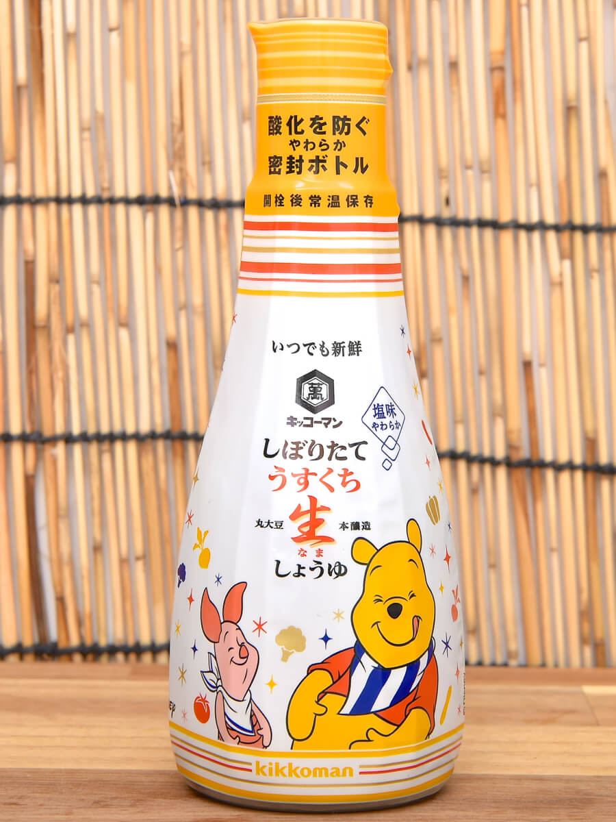 「しぼりたてうすくち生しょうゆ」はくまのプーさん&ピグレットデザイン。
