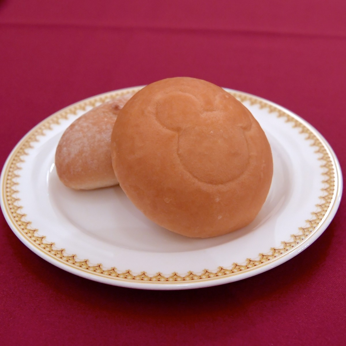 パンは2種類、ミッキーマークがついたやわらかい米粉のパンとさくっと食感も美味しいバケット。