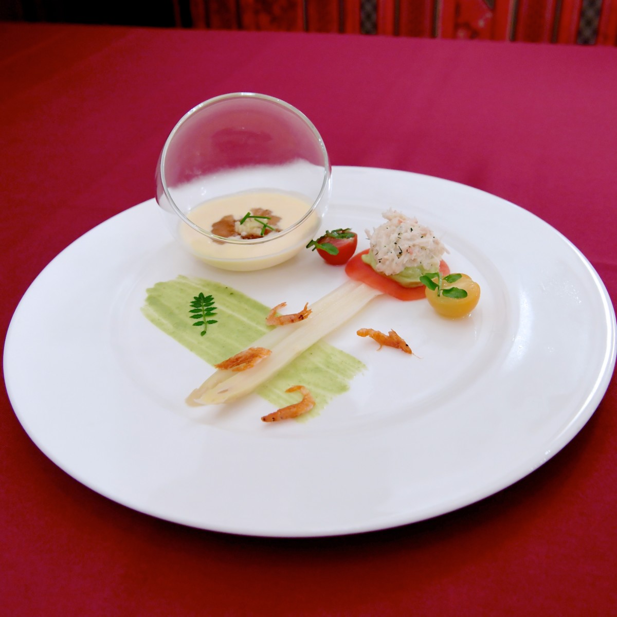 - ホワイトアスパラガスのマリネとズワイ蟹のサラダ