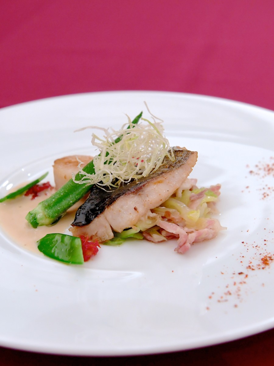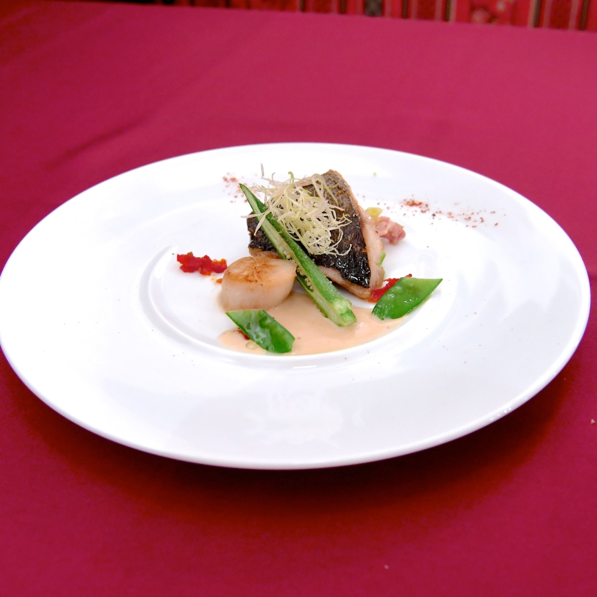 イサキと帆立貝のポワレ、ヴァンブランソース