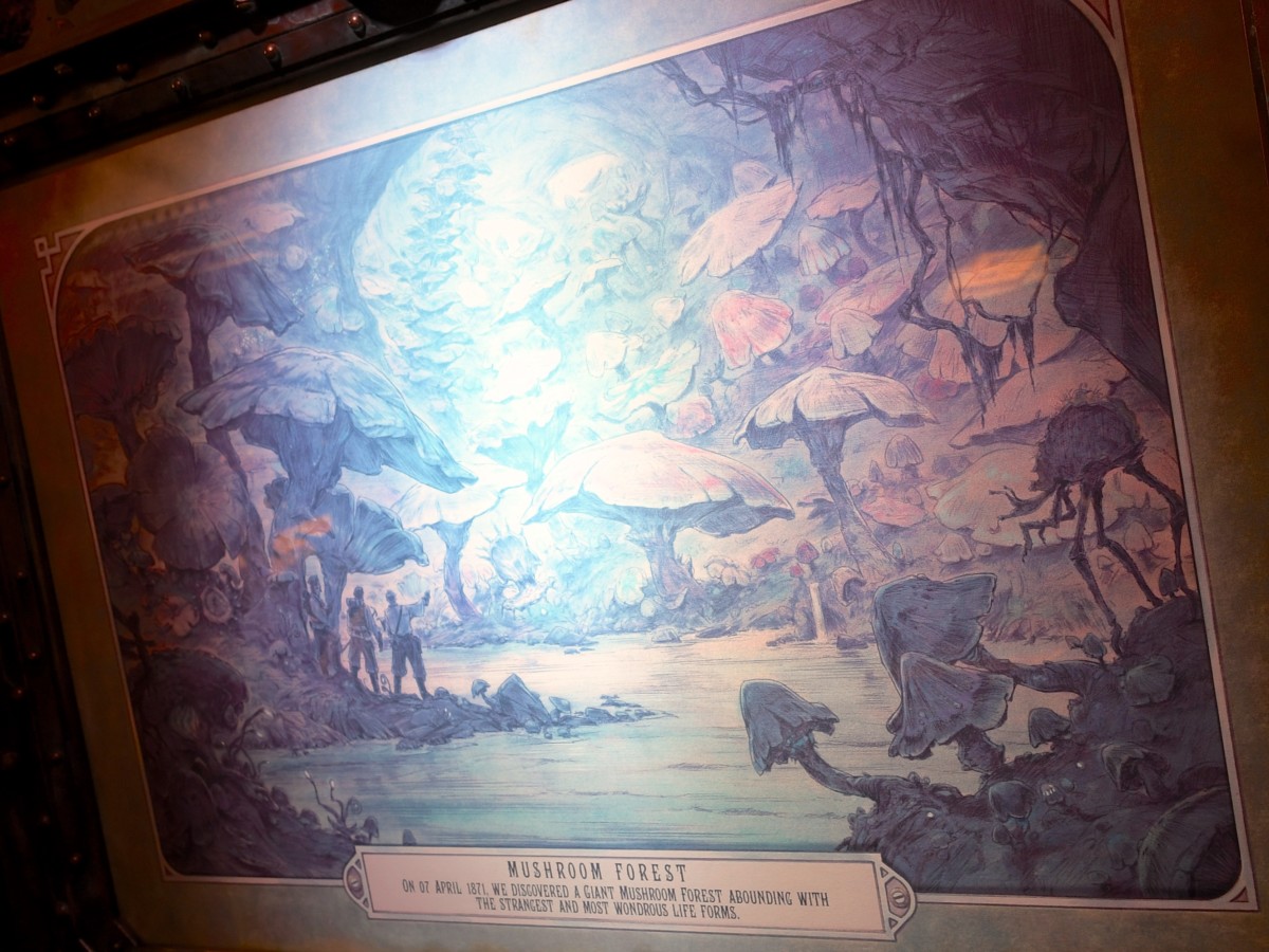 地底に合わせて気密が保たれており、ネモ船長とクルーが地底に住む動植生物の様々な研究を行っています。