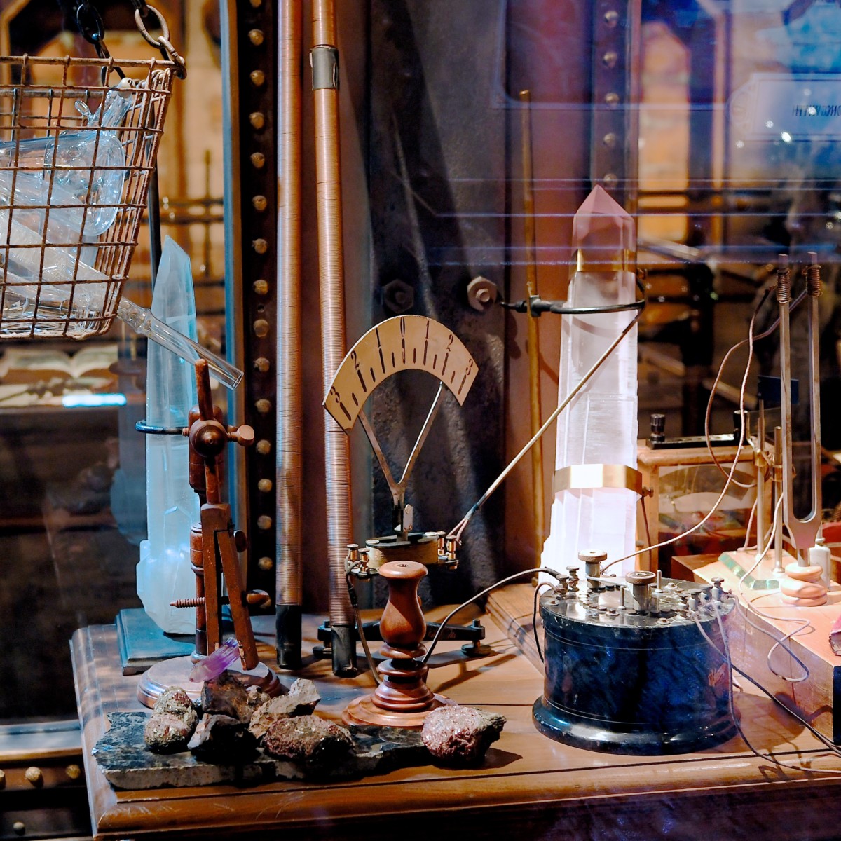 生物研究室のガラス展示の中には美しい水晶を見ることができます。