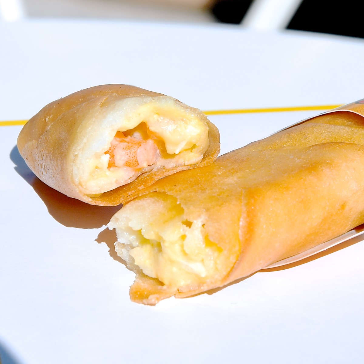 たまごらしく黄色いパッケージのスプリングロール(エッグ&シュリンプ)