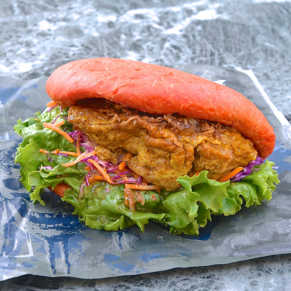 真っ赤なパンズが目を引くサンドウィッチ。