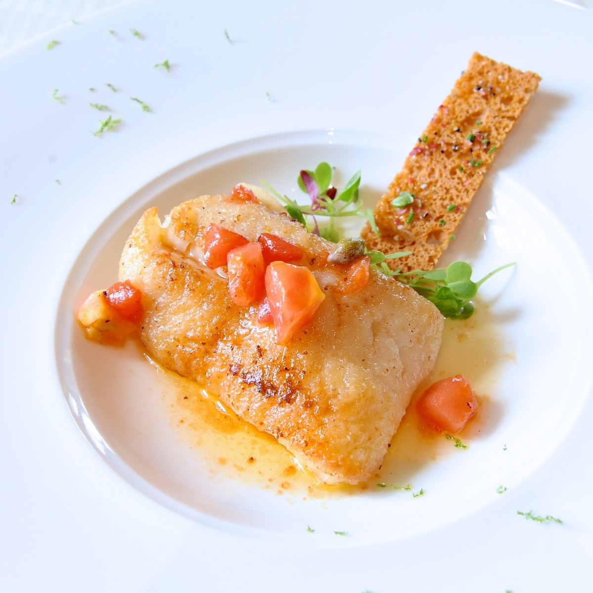 カレイのポワレ カボス香るグルノーブルソース  パン・デピスのクルトンを添えて(+800円で「ロブスター」を追加できます)