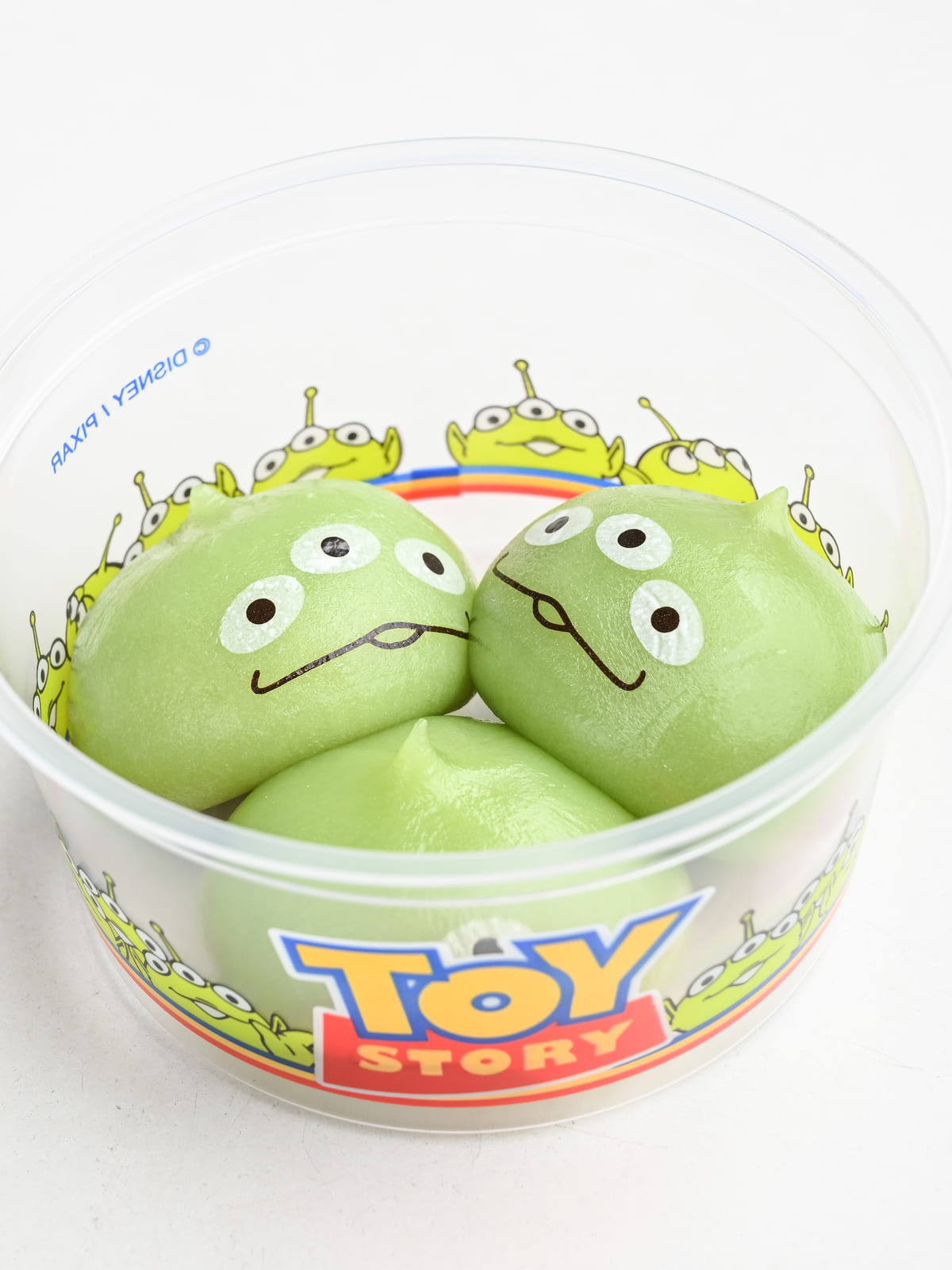 ディズニー/ピクサー映画『トイ・ストーリー』に登場するピザプラネットのロケット型クレーンゲームの景品だった三つ目のエイリアン人形、リトルグリーンメン(エイリアン)モチーフのもちもちかわいいメニュー。