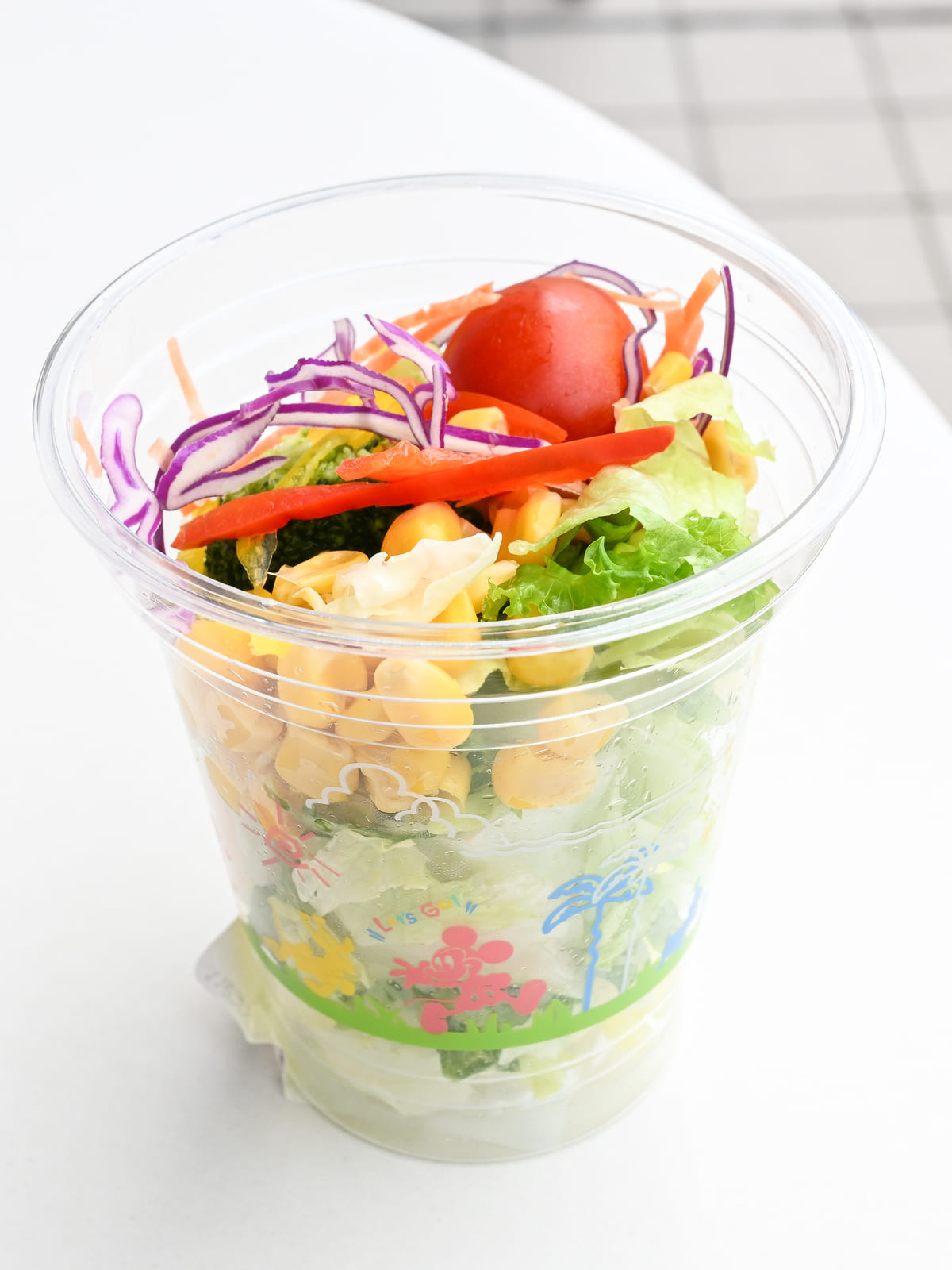 ブロッコリー、パプリカ、ミニトマト、コーンなど彩りが鮮やかなカップサラダ。