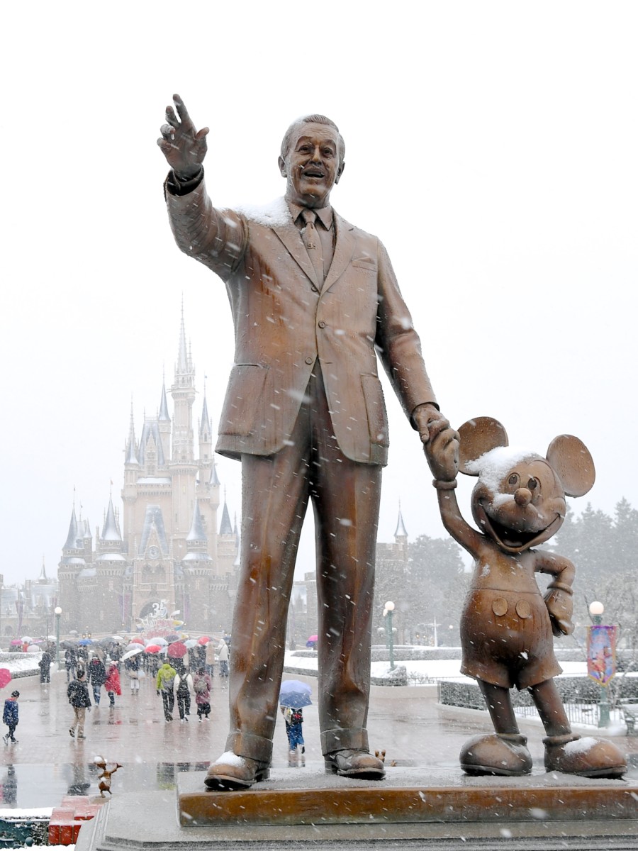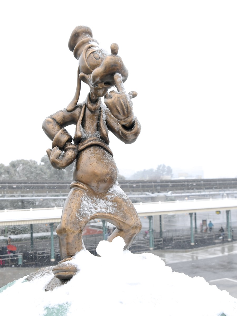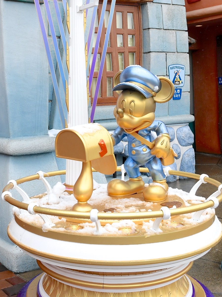 ウォルト像にも雪が積もっています。