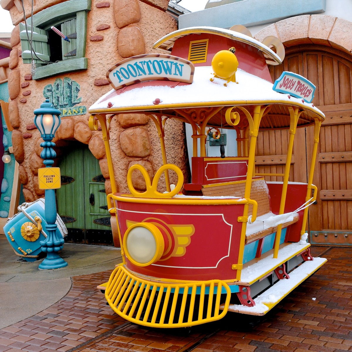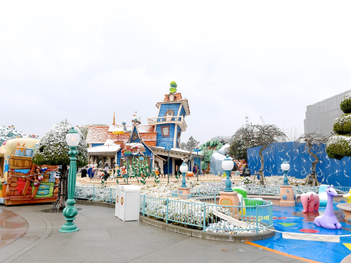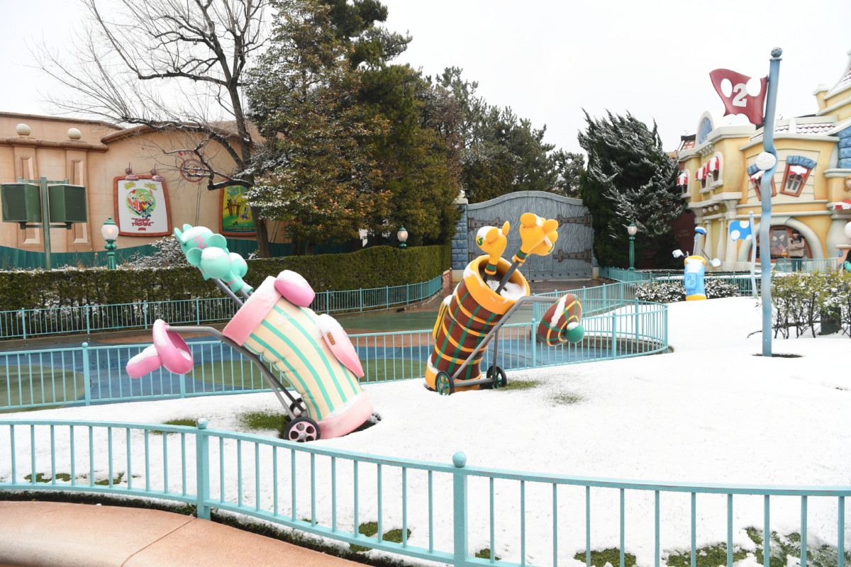ミッキーたちが住む街「トゥーンタウン」にも雪がつもりました。