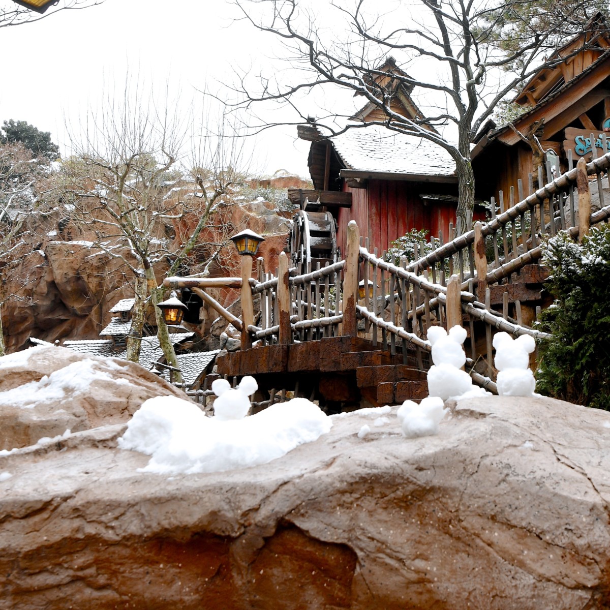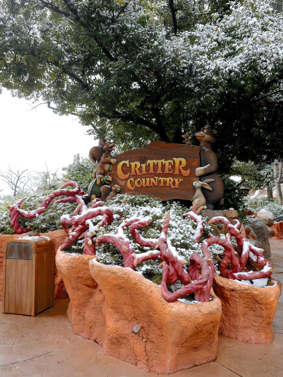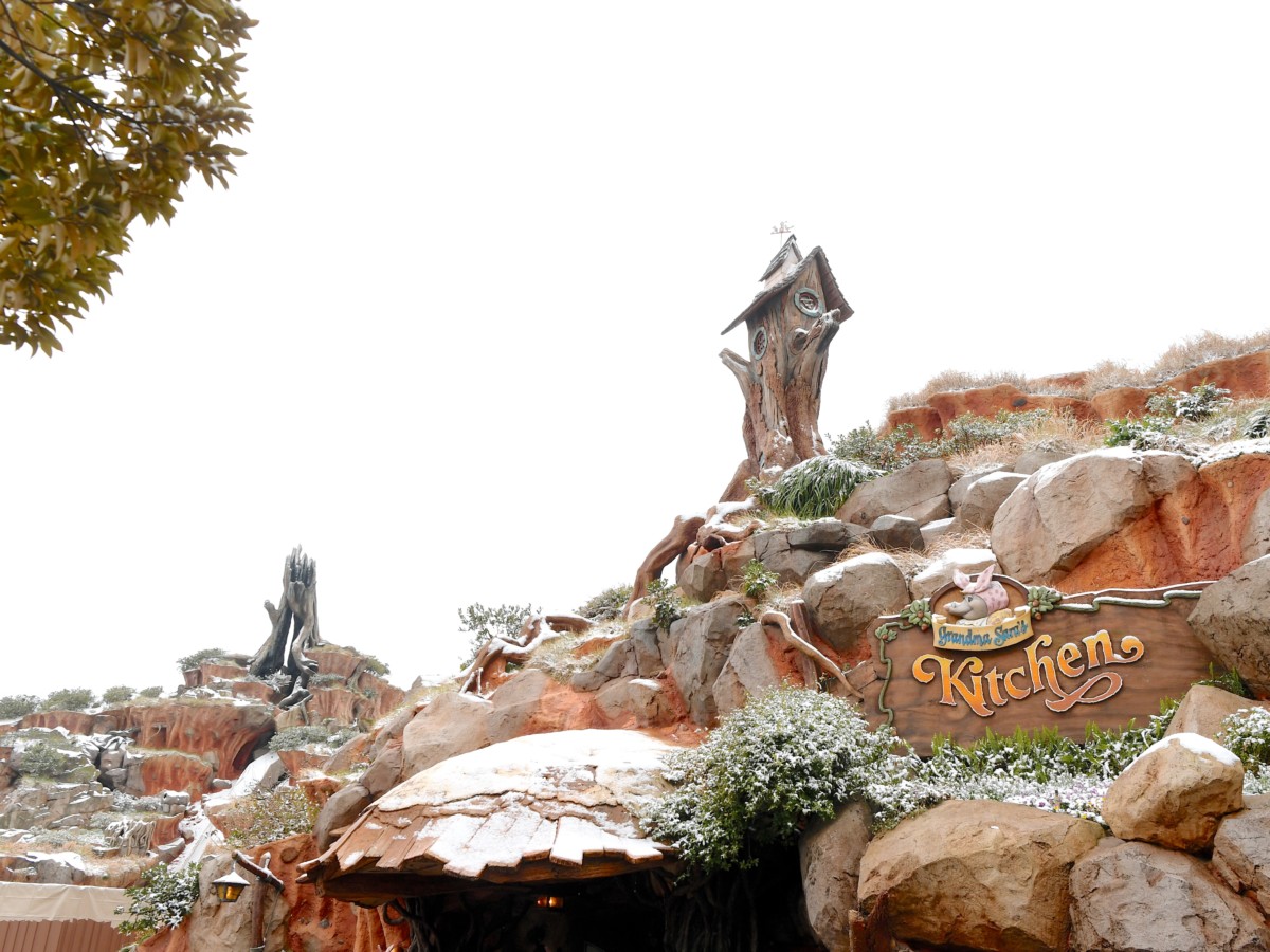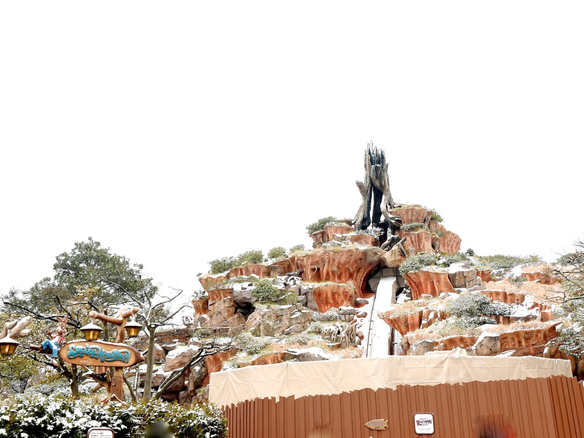 リハブ中のスプラッシュ・マウンテンには雪が積もっていました。