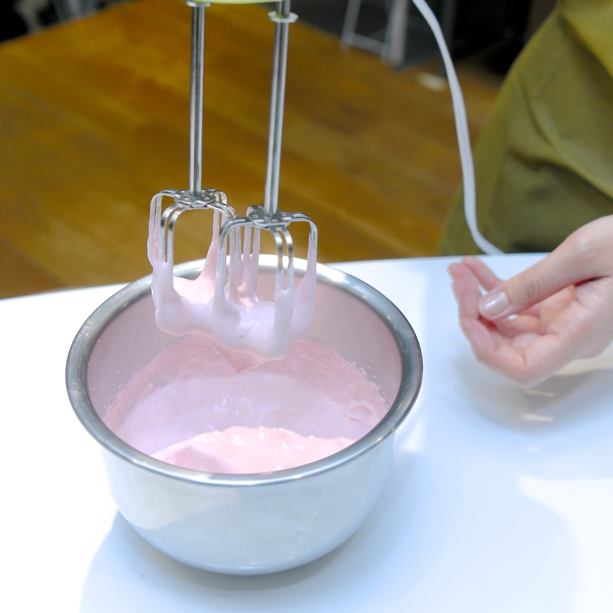 最後に、ヨーグルト・豆乳クリーム・フリーズドライのいちごを混ぜあわせ“ヨーグルトベリークリーム”をつくり、