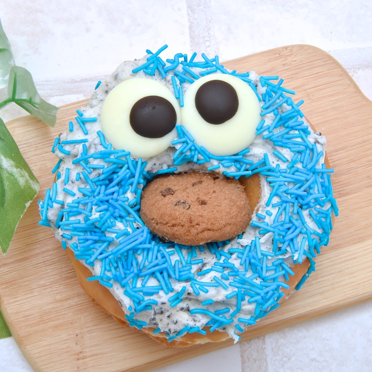 お口に当たるドーナツの穴には、「クッキーモンスター」の象徴とも言えるチョコチップクッキー☆