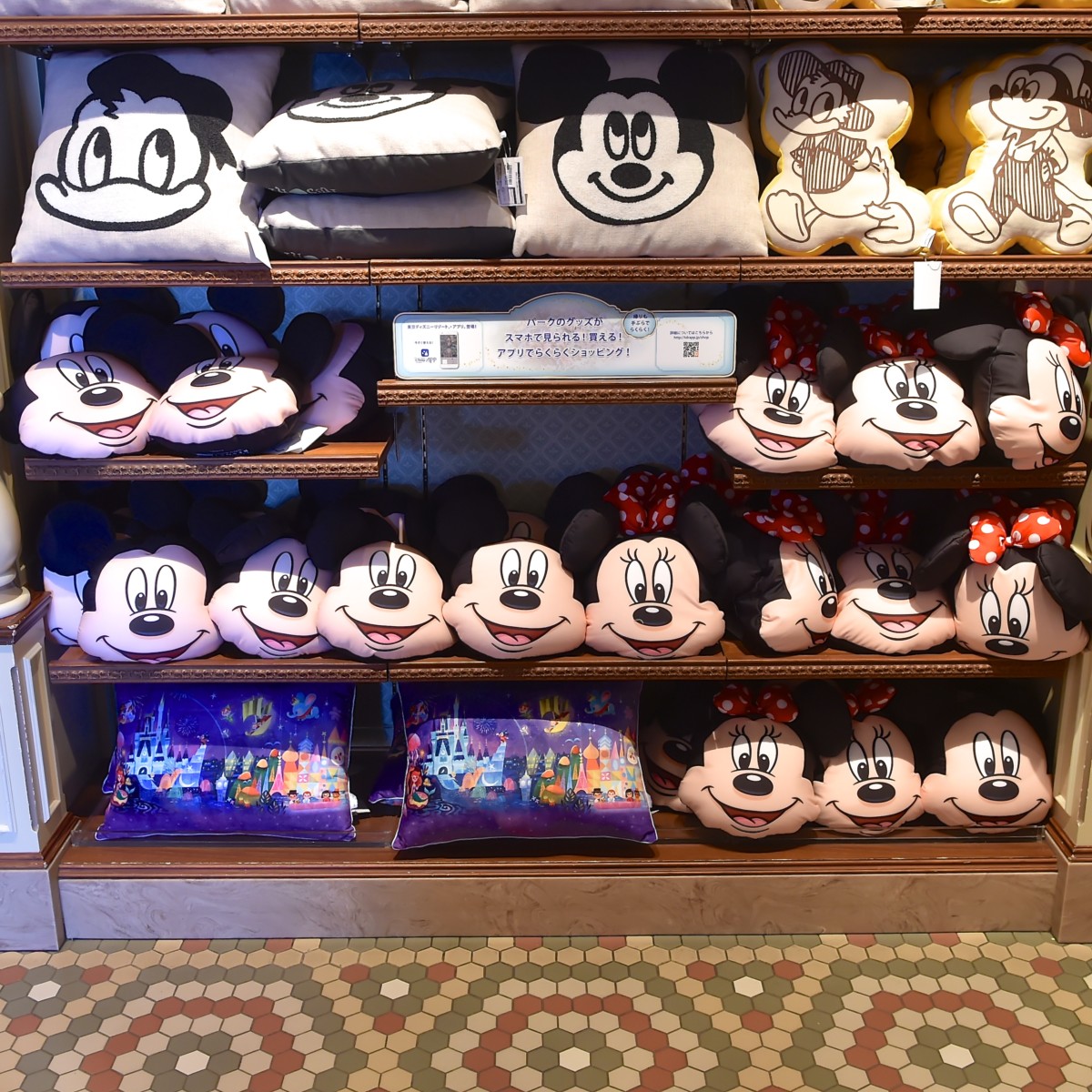 東京ディズニーランド、東京ディズニーシーでは人気のディズニーキャラクターたちをデザインしたクッションを種類豊富に販売中!
