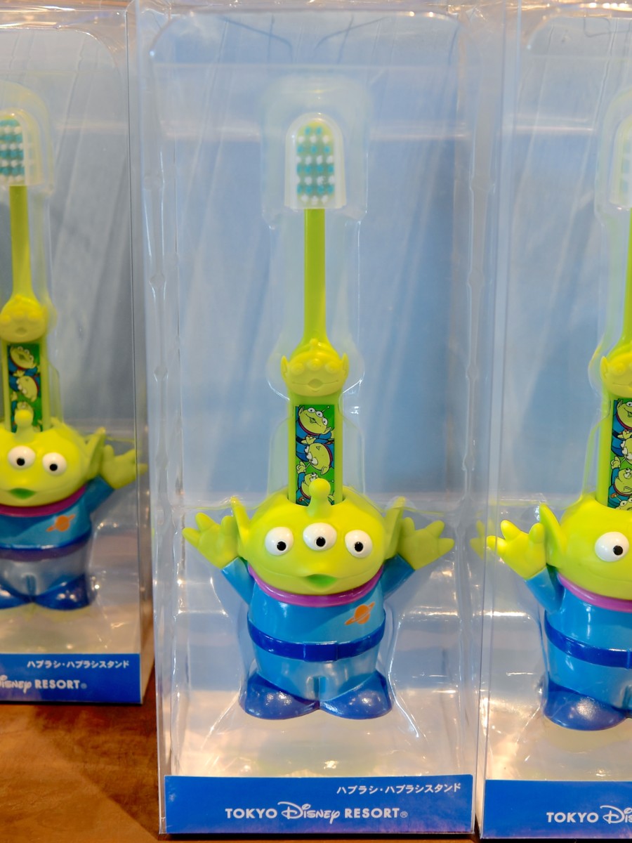 『トイ・ストーリー』の人気キャラクター、リトルグリーンメンの歯ブラシ&歯ブラシスタンド。