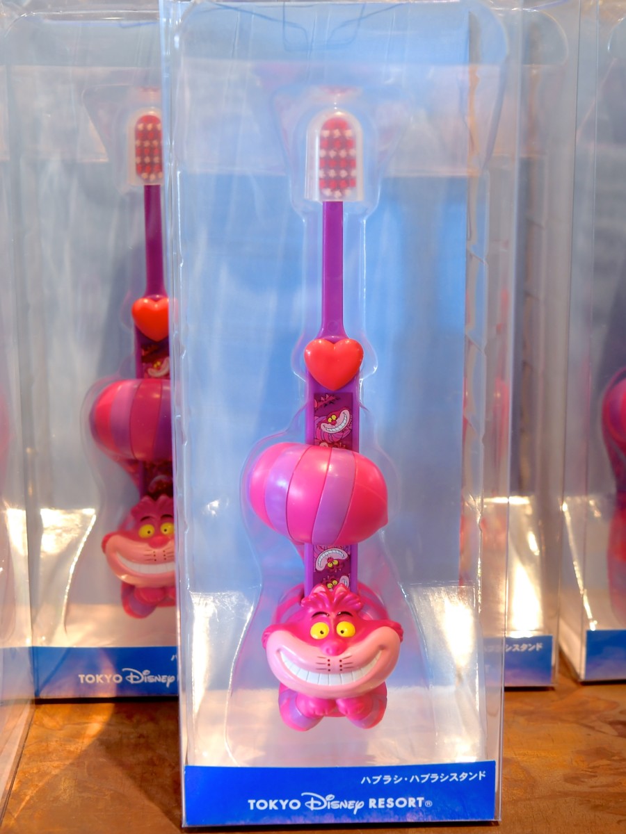 『ふしぎの国のアリス』の人気キャラクター、いたずら好きのふしぎな猫、チェシャ猫の歯ブラシ&歯ブラシスタンド。
