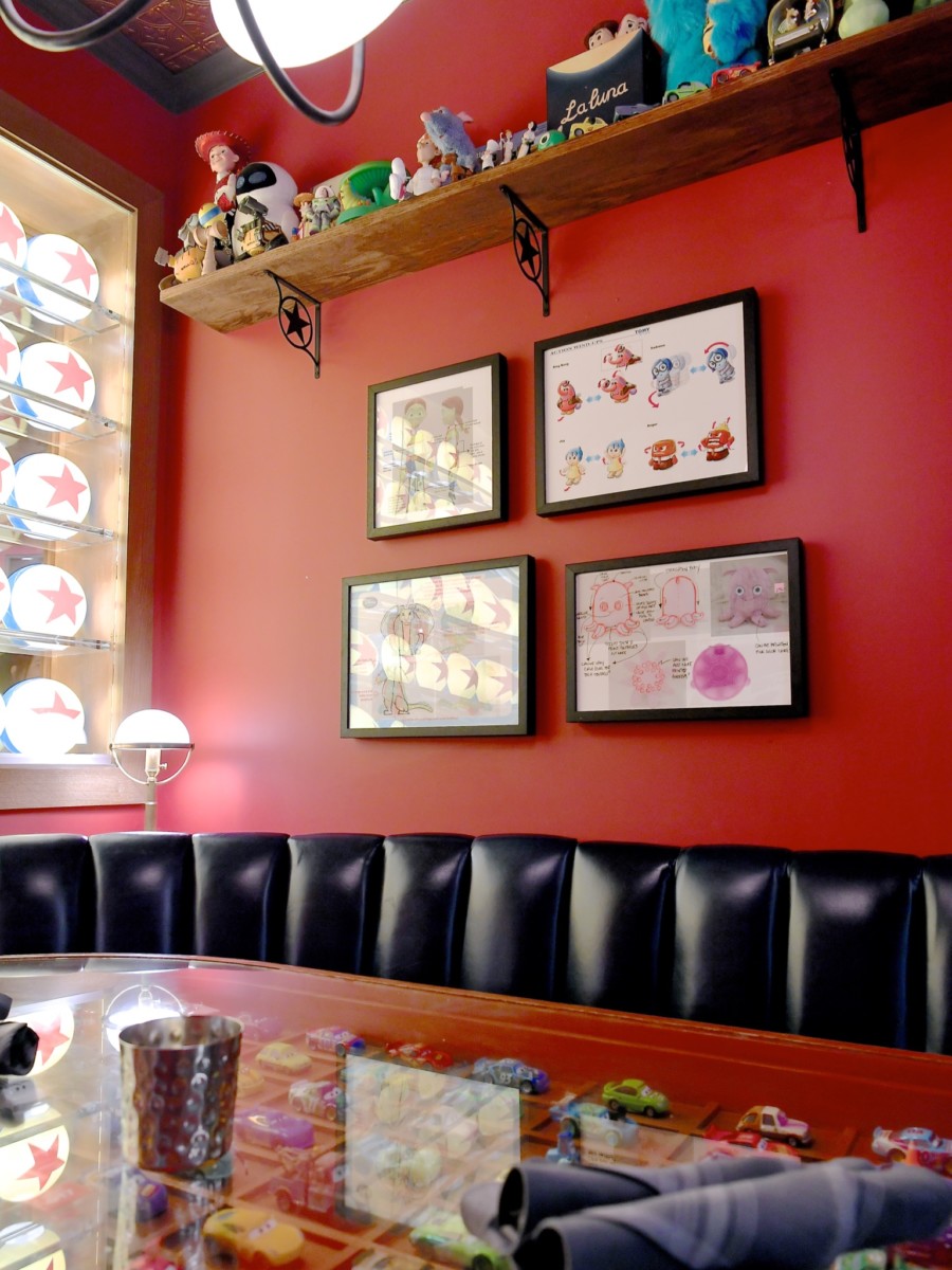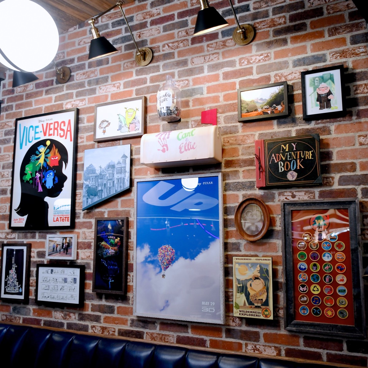 ディズニー/ピクサー映画の長編、短編のアートが所狭しとディスプレイされています。